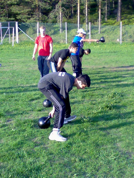 Juntalle on hankittu muutama pari kahvakuulia. Niitä sopii kesän aikana heilutella, niin syksyllä juntta nousee.