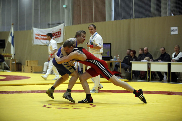-vapaapainijoiden poissaolo. Siihen osattiin kyllä varautua, mutta kato oli lähes totaalinen. Ville Heinolle ja Vaasan Toverien pojille kiitos käynnistä. Helsingin Painimiehet pari painijaa ilmoitti, mutta heilläkään ei liene ollut oikeasti aikomus kisoihin tulla. Ainakin osanottomaksut taisivat jäädä maksamatta. Eikö vapaan porukka ymmärrä kusevansa tuolla käytöksellä omiin trikoisiinsa? Arvatkaa paljonko huvittaa lähteä raukoilta rajoilta etelään vapaan kisoihin? Ja jos joku sanoo, että nykyiset krekon säännöt särkevät vapurit, niin höpö höpö. Näillä säännöillä lähdetään painimaan matto-osuutta lähes poikkeuksetta vyörytyksellä. Ja mikäli oikein muistan, niin rullin puolustuksessa ainakin Tampereen EM-painien perusteella vapureilla olisi paljon parannettavaa. Välillä finskiä vietiin molskilla kuin kuoriämpäriä.