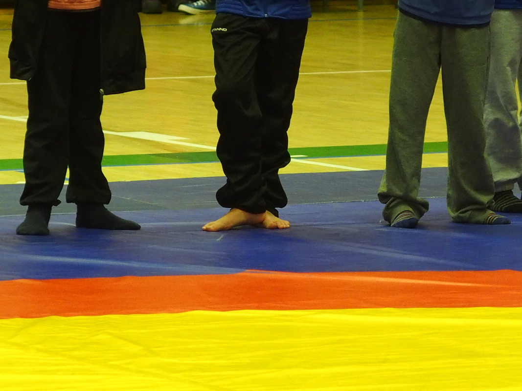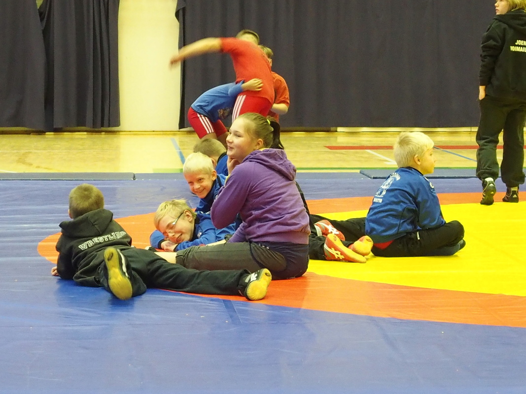 Oskari taisi hukata ainakin osan tavaroistaan, mutta matolla hommat hoituivat hienosti. Kaksi selkävoittoa ja se niskalenkkikin onnistui lopulta. Hyvin painittu! |